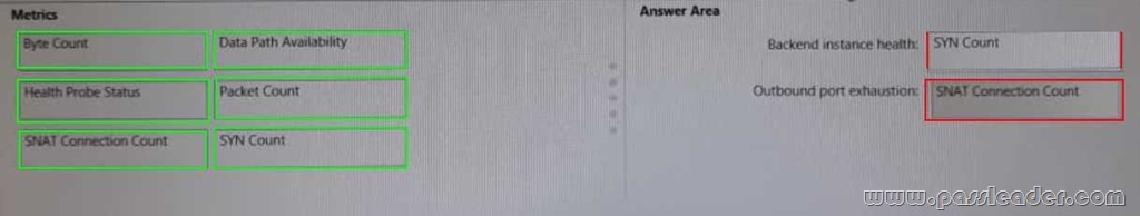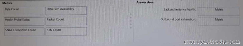 You have standard Load balancer configured to support three virtual machines on the same subnet. You need to recommend a solution to notify administrators when the load balancer fails. Which metrics should you recommend using to test the load balancer? (To answer, drag the appropriate metrics to the correct conditions. Each metric may be used once, more than once, or not at all. You may need to drag the split bar between panes or scroll to view content.)