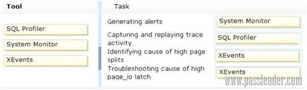 You administer a Microsoft SQL Server database that is used by an application. Users of the application report performance issues. You need to choose the appropriate tool for performance-tuning of SQL Server databases. Which tool or tools should you use? (To answer, drag the appropriate tool or tools to their corresponding task or tasks in the answer area. Each tool may be used once, more than once, or not at all. You may need to drag the split bar between panes or scroll to view content.)