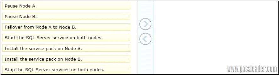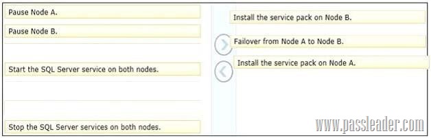 You administer a single Microsoft SQL Server instance on a two-node failover cluster that has nodes named Node A and Node B. The instance is currently running on Node A. You want to patch both Node A and Node B by using the most recent SQL Server Service Pack. You need to ensure that the following requirements are met:
